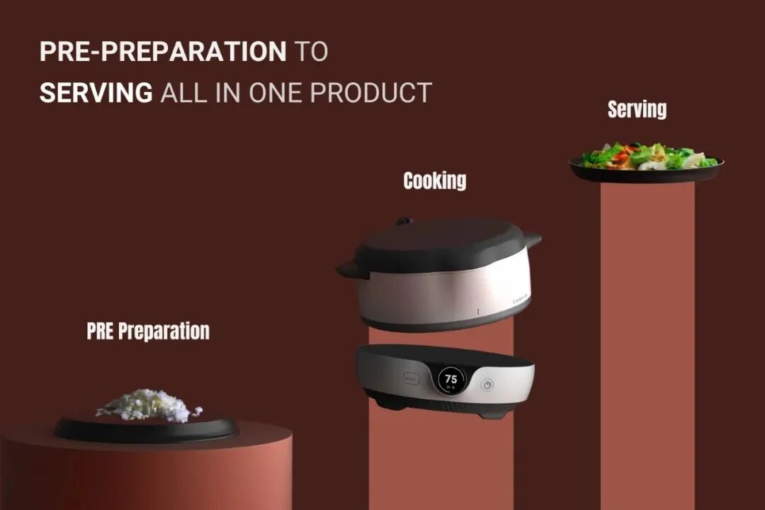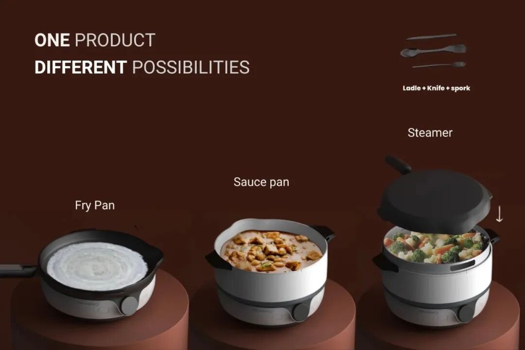 Cookmate 专为小户型而设计,是一款一体式厨房用具,从准备到烹饪再到上菜,一切尽在一台设备中。它的模块化设计有一系列可堆叠的部件,可将炉灶面变成平底锅、慢炖锅,甚至是蒸笼。内部的感应线圈靠电力工作,无需在炉灶下方放置气瓶。